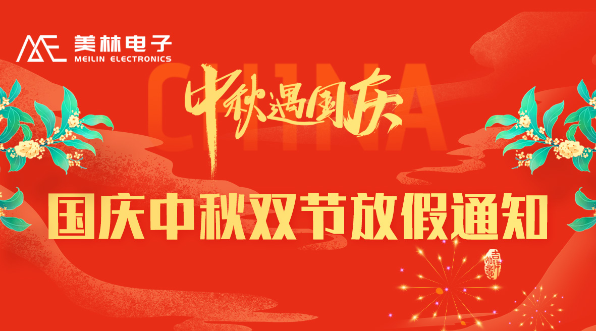 尊敬的各位客戶、各合作伙伴: 團(tuán)圓慶華誕,雙節(jié)共歡騰。國(guó)慶中秋雙節(jié)將至,根據(jù)國(guó)家有關(guān)規(guī)定結(jié)合公司實(shí)際,放假安排如下:10月1日至10月8日放假休息,共8天,10月9日(星期四)正常上班。 感謝您一如既往的信任和支持。美林電子祝您財(cái)源廣進(jìn),團(tuán)圓喜樂(lè),闔家幸福,萬(wàn)事如意!